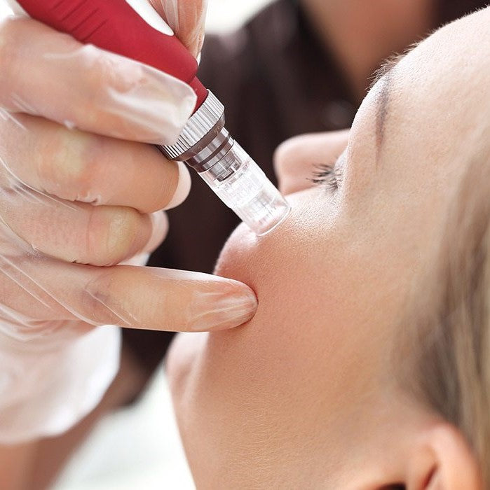 Collagen Induction Therapy/Microneedling RF or skin needling is a cosmetic procedure that involves repeatedly puncturing the skin with tiny, sterile needles. It is used to treat and improve conditions like acne scarring, fine lines and wrinkles, loose skin, skin texture, pore size, brown spots, stretch marks, and pigment issues. It is controlled injury to the skin at the same time creating micro channels for maximum penetration of products such as Hyaluronic Acid and Growth Stem Cells. Results are based on frequency of treatments, preferably once a month.