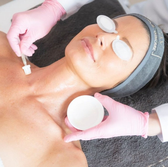 This treatment is for clients who want to lighten or brighten certain parts of their body. The chemical peel can treat different areas of the body such as the décolleté, hands, underarms, elbows, knees, legs, and bikini area. Skin will be assessed and a customized chemical peel will be selected to cater to your skin's needs.